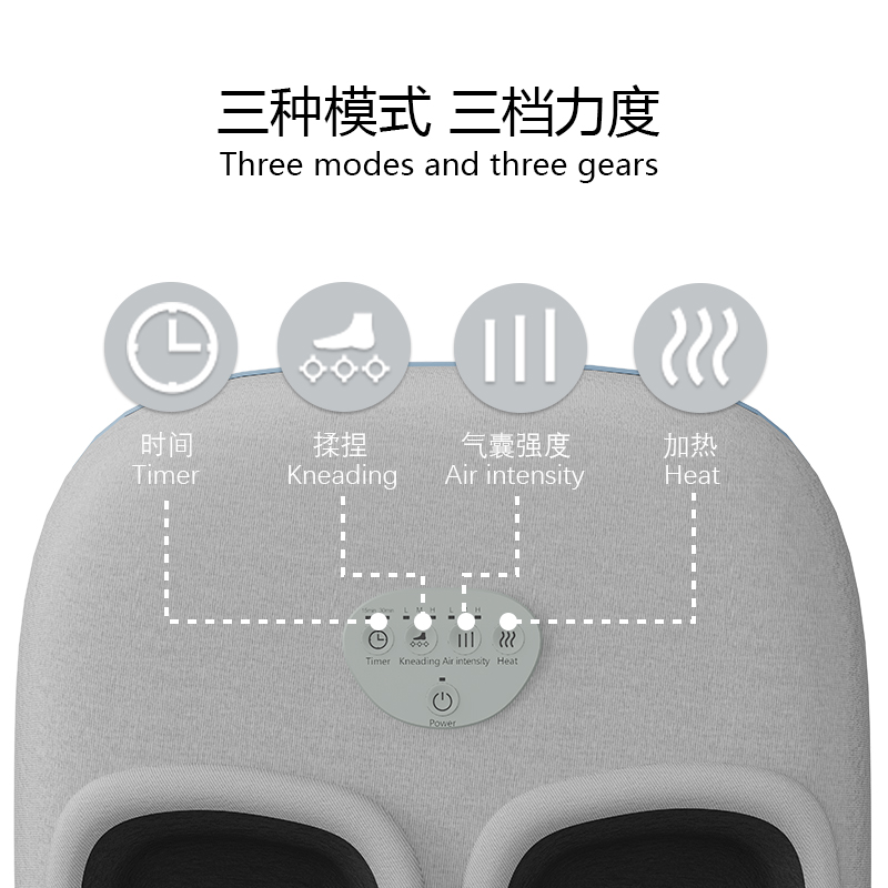 4.足背氣壓按摩,單獨(dú)控制氣壓按摩力度(三檔)。