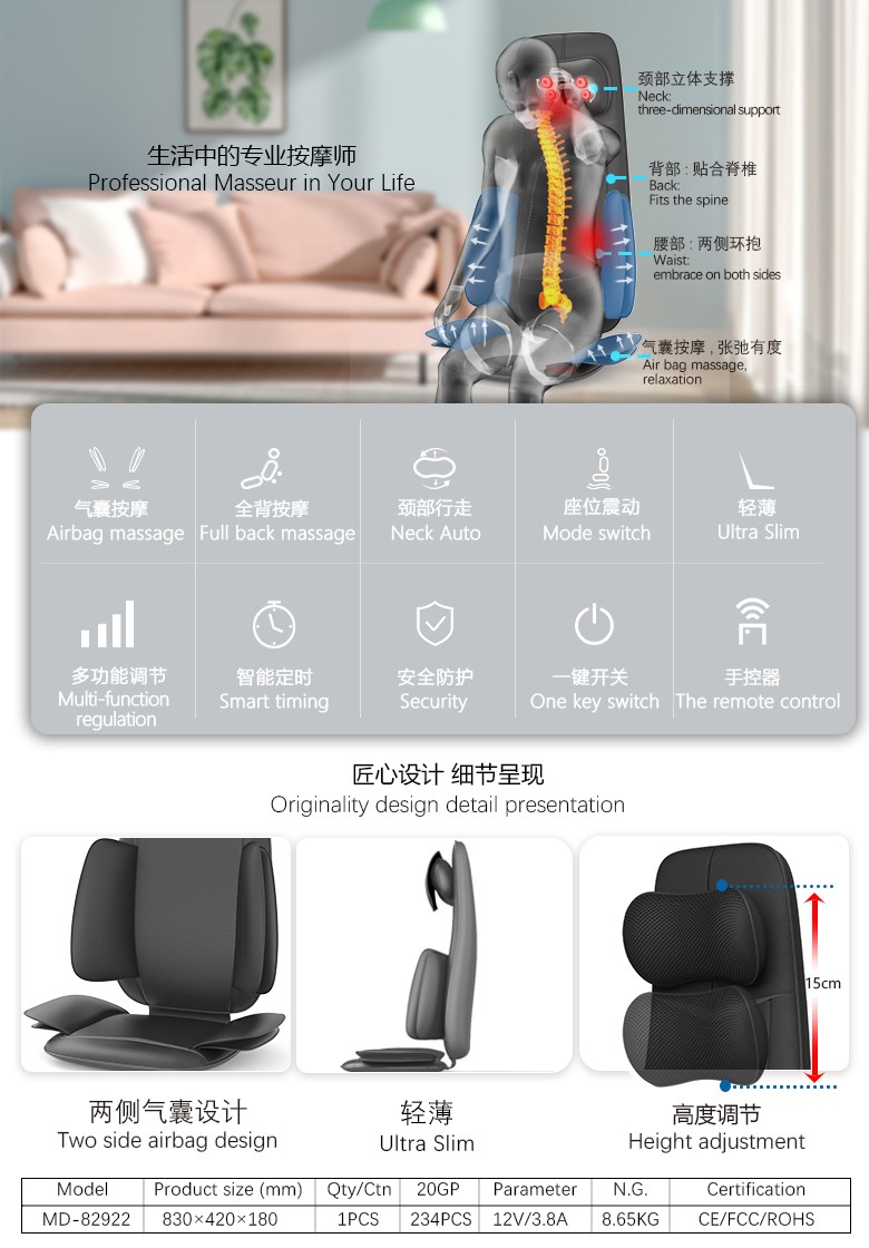 3.單電機(jī)8頭背部揉捏,普通車充,12V 5A適配器